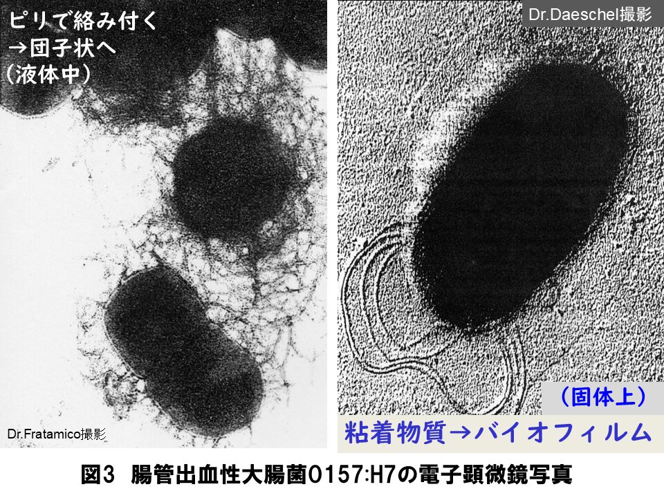 図3は、腸管出血性大腸菌の電子顕微鏡写真です。1996年に発生した腸管出血性大腸菌食中毒に関する調査で米国を訪問した時に、いただいたものです。